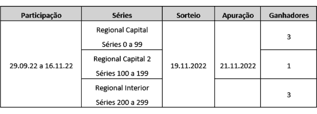 PERÍODO DE PARTICIPAÇÃO DA APURAÇÃO: 29/09/2022 00:00 a 16/11/2022 23:59